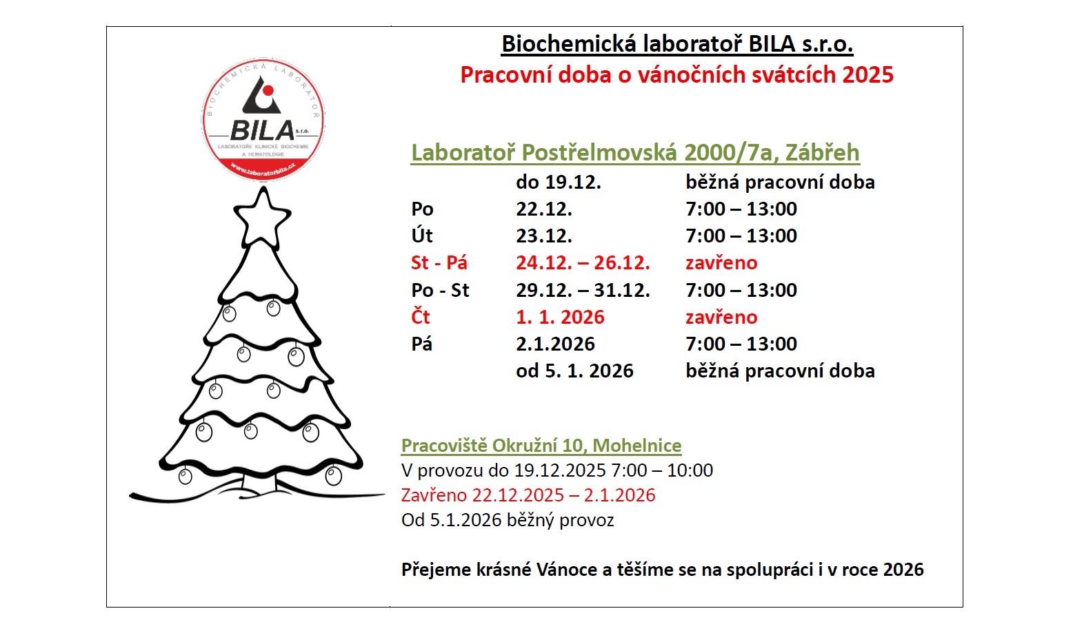 Centrální telefon: 583 416 449Zelená linka: 800 100 124Email: laborator@laboratorbila.cz